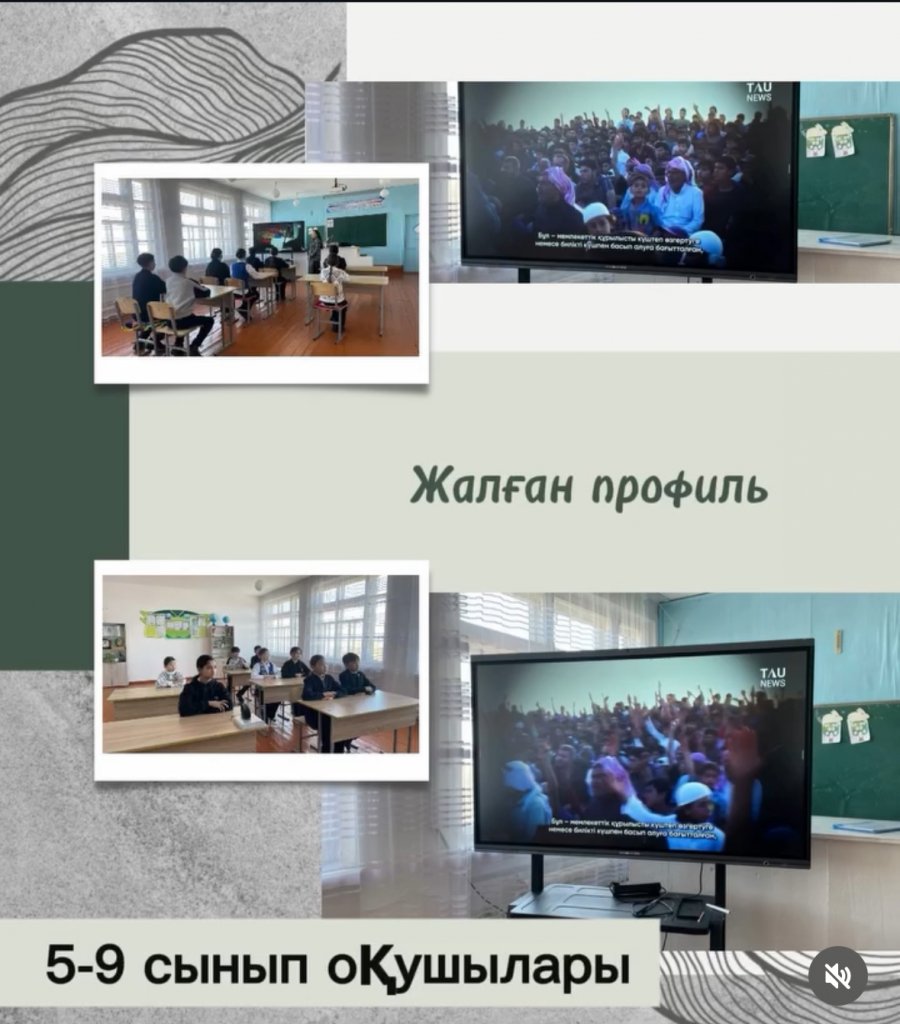 Оқушылар бейнероликті қызығушылықпен көріп, жалған...