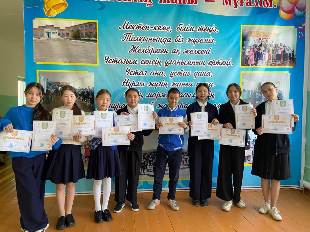 2024-2025 оқу жылында 8-11 сынып оқушылары арасындағы республикалық Абай оқуларының облыстық кезеңінің “Өленге әркімнің - ақ бар таласы” номинациясы бойынша жүлдегері 9 сынып оқушысы Жолдас Айым Марапатталды.